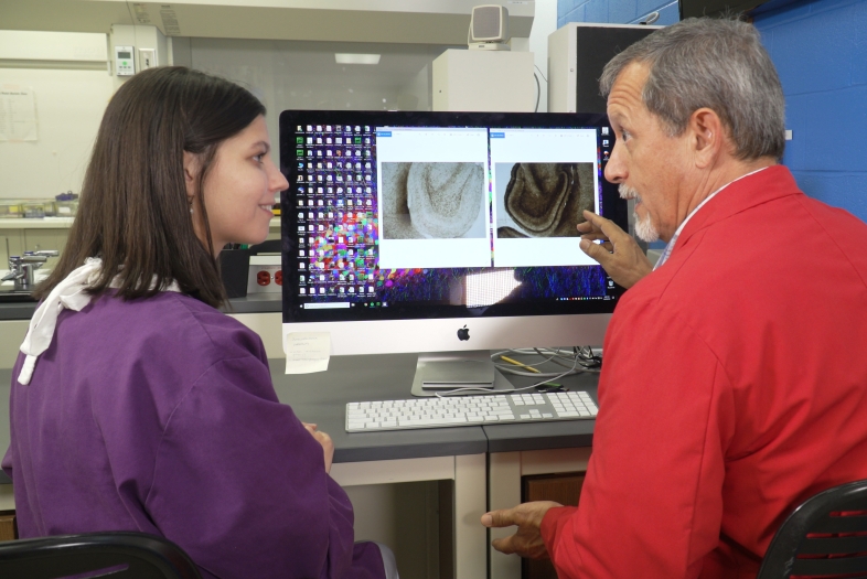 Katie Barlis '20 studies the structures of the brain concerned with learning and memory in Professor Julio Ramirez's neuroscience lab.