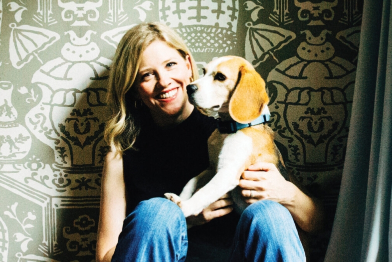 Mary Laura Philpott ’96 with her dog, Eleanor Roosevelt. Photo by Heidi Ross