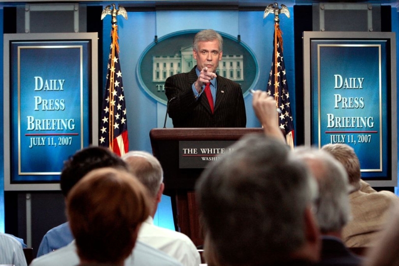 Bush Administration Press Secretary Tony Snow holds the daily press briefing inside the newly remodeled Brady Press Briefing Room in the West Wing of the White House July 11, 2007, in Washington, D.C. (Photo by Chip Somodevilla/Getty Images)