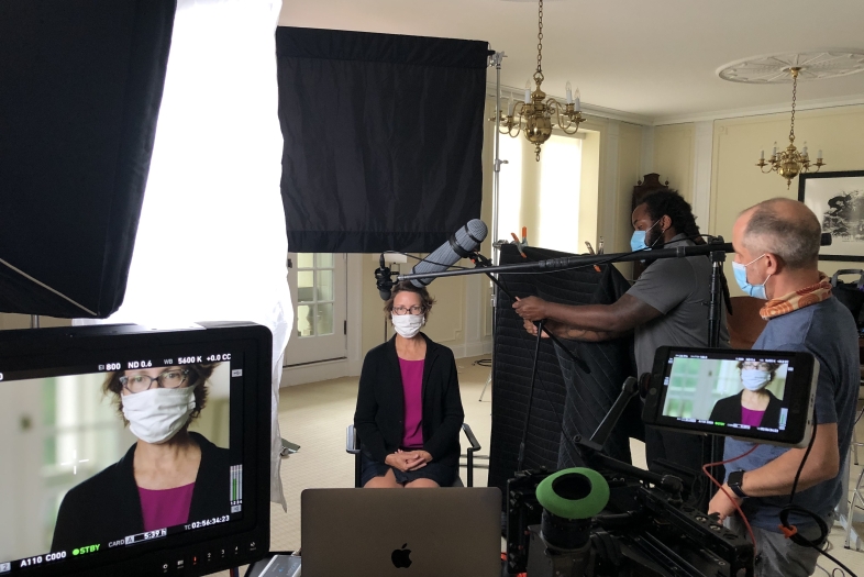 Wills recorded her on-camera segment last summer, during the height of the pandemic. Working with a very small crew, Wills shot the interview with producer Sarah Colt via Zoom from the Baxter-Davidson Room in Chambers Building.