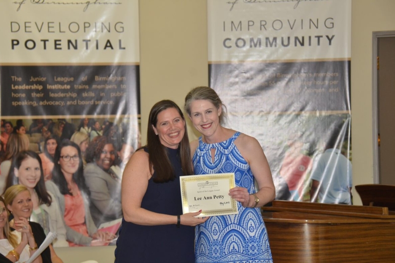 Petty (right) receives a Junior League of Birmingham “Spirit of the League” award.