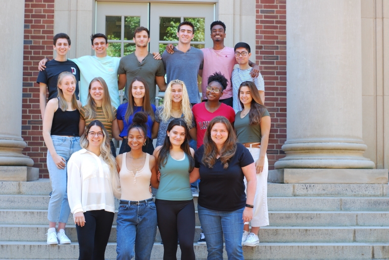 Cadieux’s research with Prof. Nicole Snyder focuses on new ways to detect and target cancerous tumors and microbes. Before the school year, she took part in Snyder’s summer research group (second row, third from right).