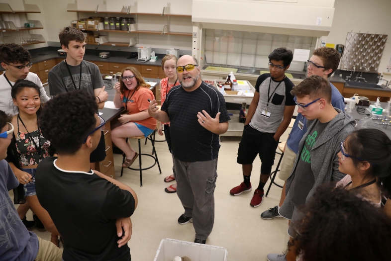 There is a lab component, though. I do the regular explosions I do in any class (laughs) but they learn about combustion-type reactions. They learn how to extract energy chemically; they make biodiesel and they make solar cells.