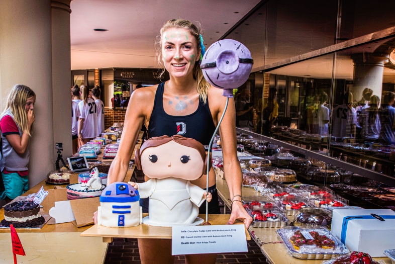 “People go out of their way to dethrone him,” says Sandy Helfgott, Davidson’s director of physical education, recreation and wellness and official Cake Race guardian. A former Davidson resident saw Barrett’s cake one year and said, “I’m going to beat him.” She laughed about it, but it was her mission to get her cake picked before Drew’s.