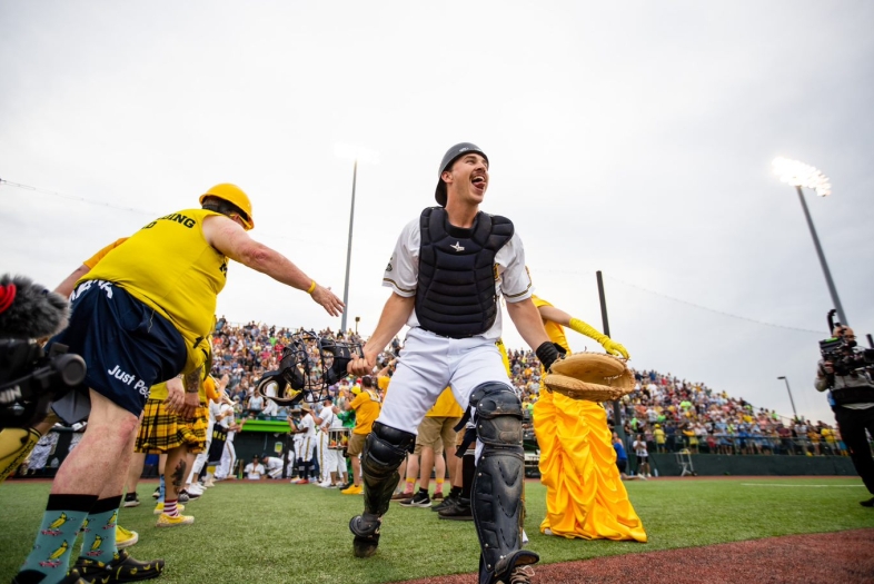 The Savannah Bananas, often referred to as the Harlem Globetrotters of baseball, have more social media followers than any Major League Baseball team. And one Banana is special to Davidson College: catcher and infielder Eric Jones ’19.