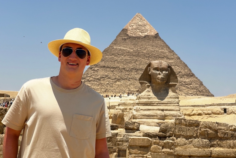 Brody Bassett ’25 reflects on his summer in Egypt where he immersed himself in the formal “high” and informal “low” dialects people there use. Zoom lessons with an Egyptian-born tutor, and countless hours studying vocabulary, phrases, and idioms led to colorful connections with everyone from restaurant servers to shop keepers to taxi drivers.