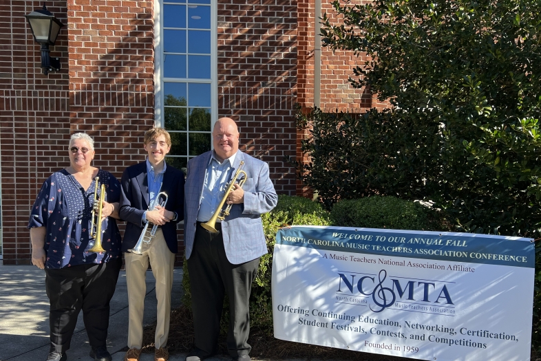 Anita Cirba, Gavin Daniel ’26 and Jay Meachum at the North Carolina Music Teachers Association’s young composer contest.