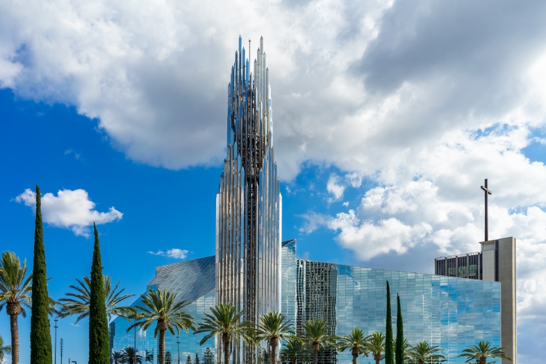His optimistic, hopeful message found an eager audience, and Schuller’s Garden Grove Community Church grew explosively. He preached to parishioners who stayed in their cars, and he broadcast his services on television. The Hour of Power, Schuller’s weekly televised church service, eventually reached millions of viewers around the globe. But the Crystal Cathedral, a translucent post-modern house of worship that seated thousands, was Schuller’s crowning achievement. The architectural landmark opened in 1980, proving his fundraising prowess and leadership expertise in growing the modern “megachurch.”
