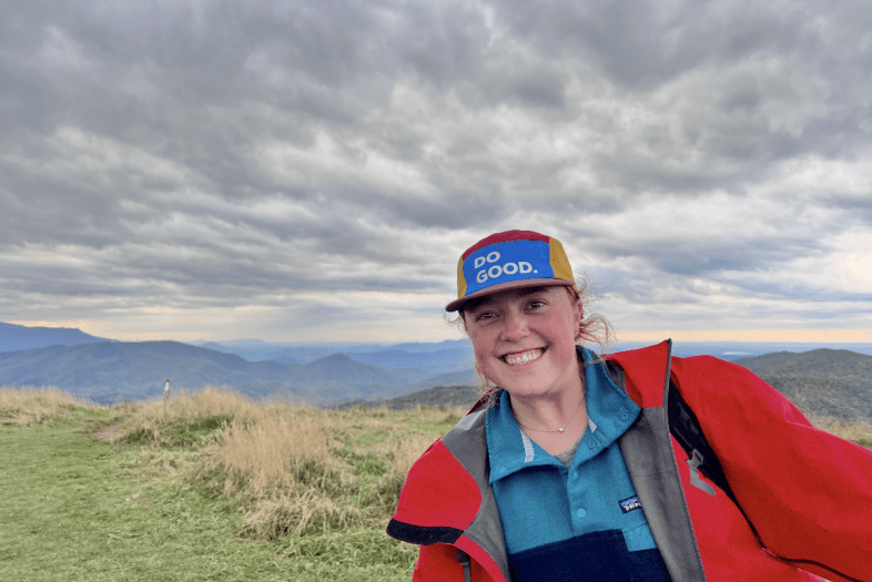 Caitlin hiking in the Blue Ridge Mountains with Davidson Outdoors.