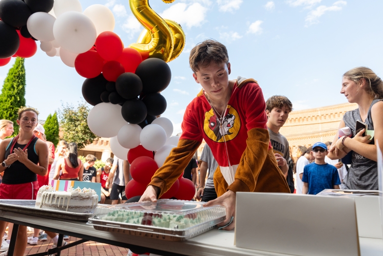 It’s been going on since 1930, and Davidson College is the only one we know of that has first-year students running a 1.7-mile course for the sweet reward of cake. (Apologies if there are others, but we did it first.)