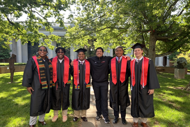 Rawlins with friends and teammates at commencement